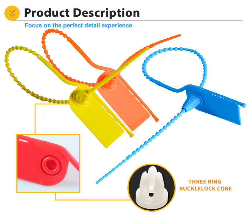 Plastic Security Seal HYPS-B01 is a newly designed plastic pull tight seal. This tamper evident seal is available with 180 mm or custom adjustable strap and fits any closure larger than 2.3mm. The tamper evident seal features a stainless steel locking insert and Tear Away Tab allowing for easy removal by hand. The 1" x 2" printing area allowing for unsurpassed customization.