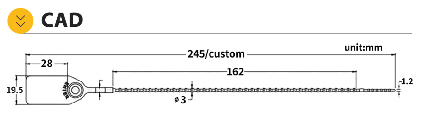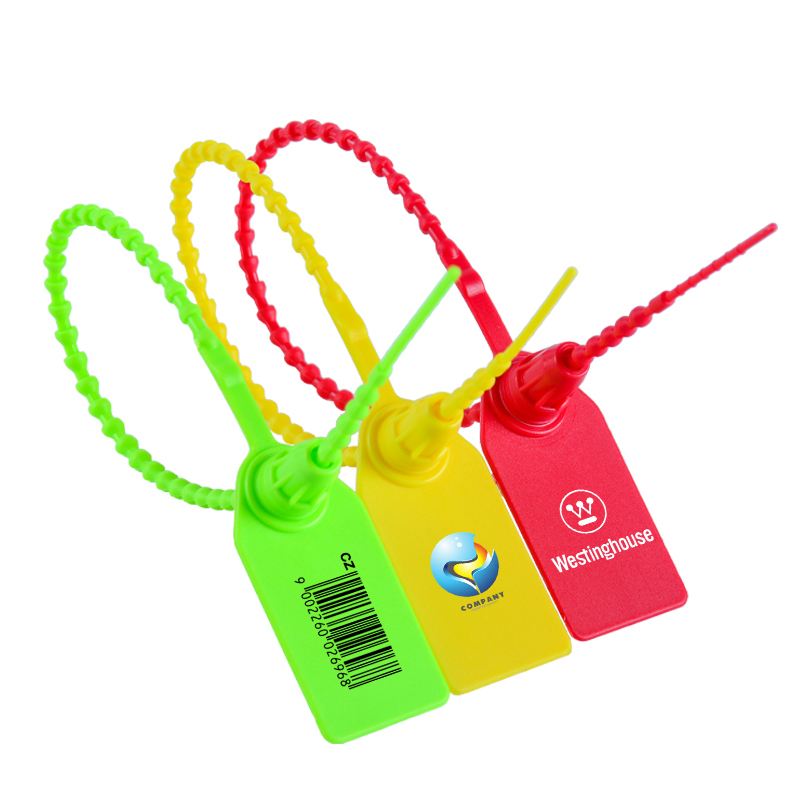 Plastic Security Seal HYPS-B02 is a newly designed plastic pull tight seal. This tamper evident seal is available with 180 mm or custom adjustable strap and fits any closure larger than 2.3mm. The tamper evident seal features a stainless steel locking insert and Tear Away Tab allowing for easy removal by hand. The 1" x 2" printing area allowing for unsurpassed customization.
