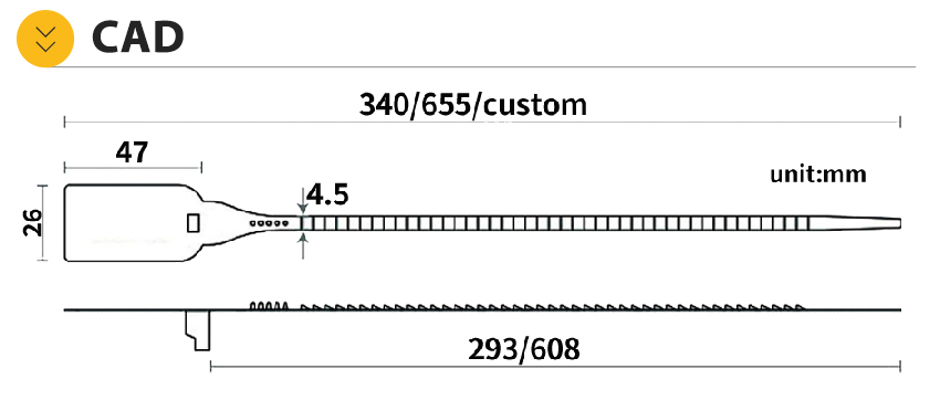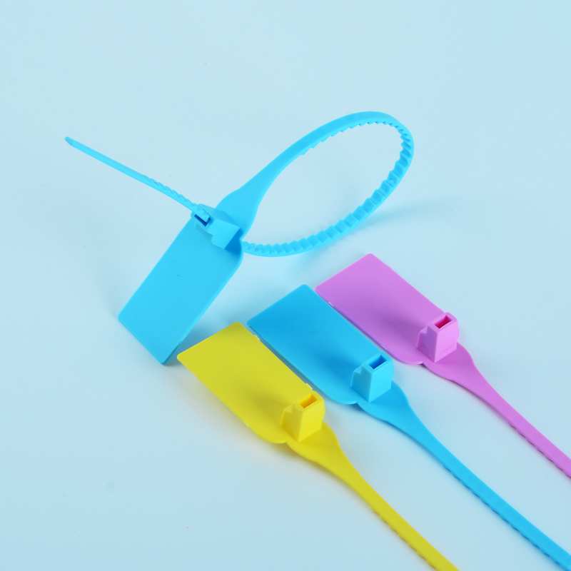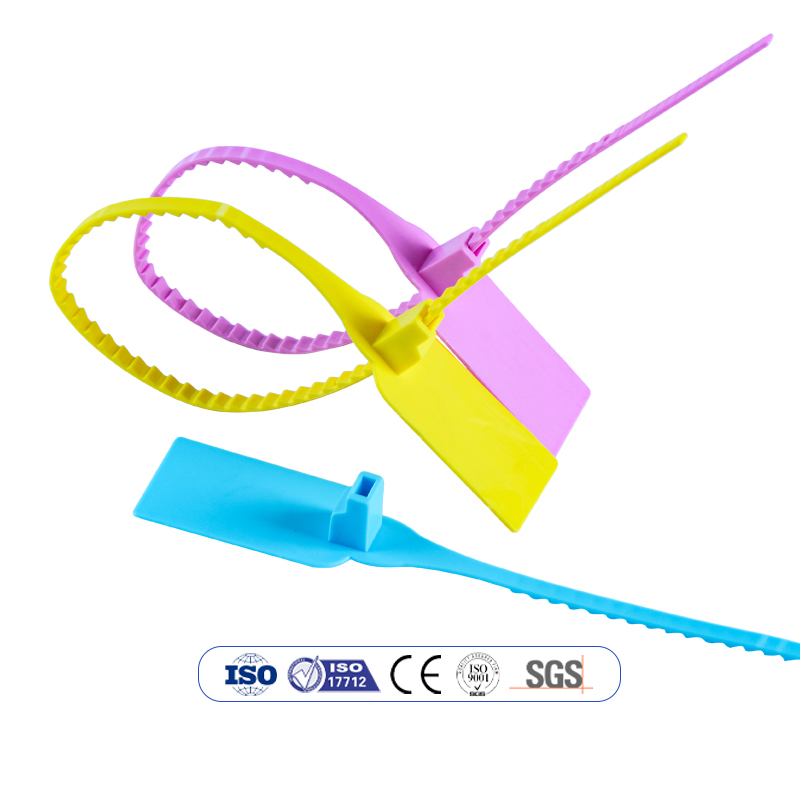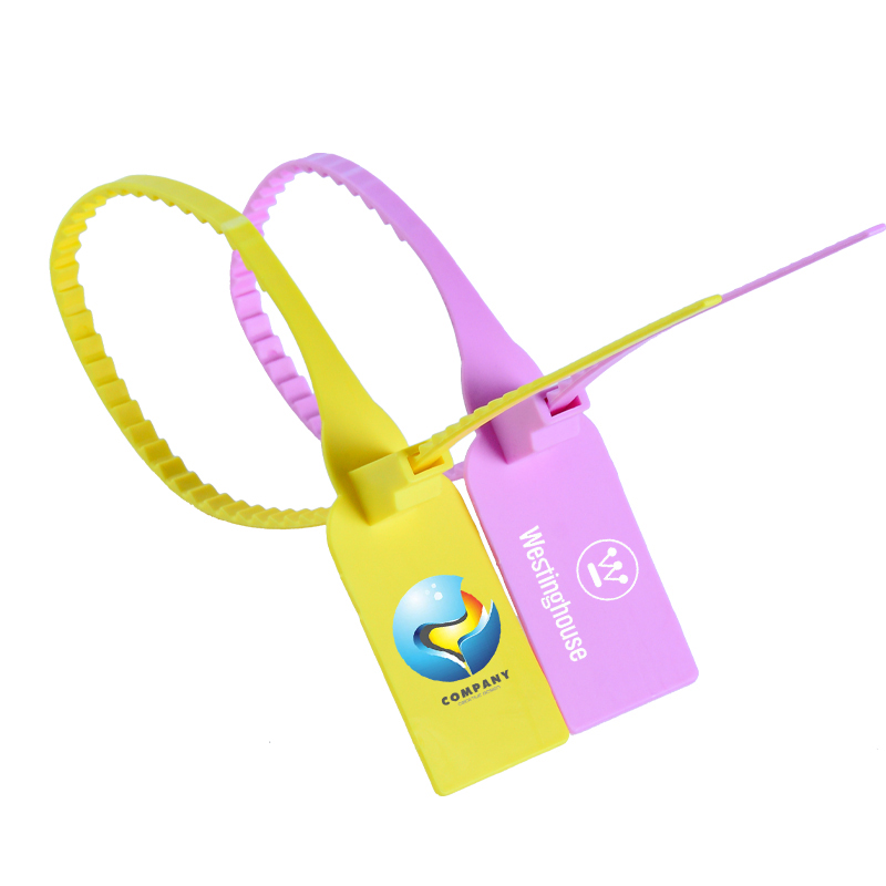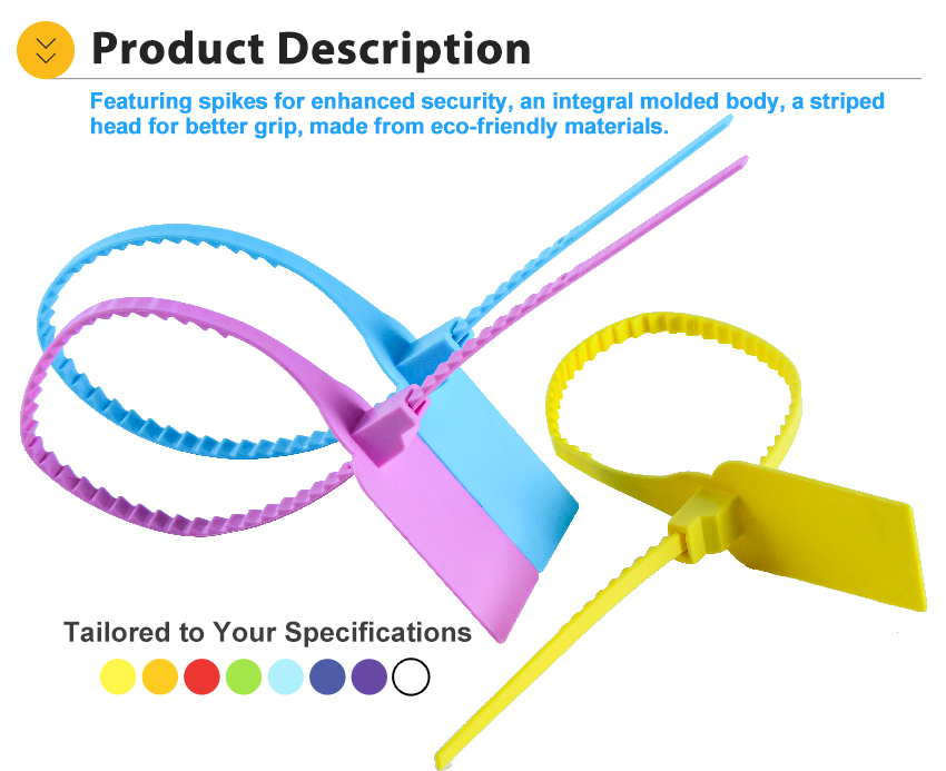 Plastic Security Seal HYPS-C03 is a newly designed plastic pull tight seal. This tamper evident seal is available with 180 mm or custom adjustable strap and fits any closure larger than 2.3mm. The tamper evident seal features a stainless steel locking insert and Tear Away Tab allowing for easy removal by hand. The 1" x 2" printing area allowing for unsurpassed customization.