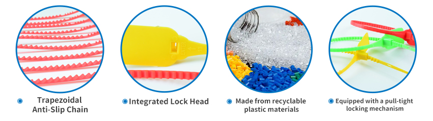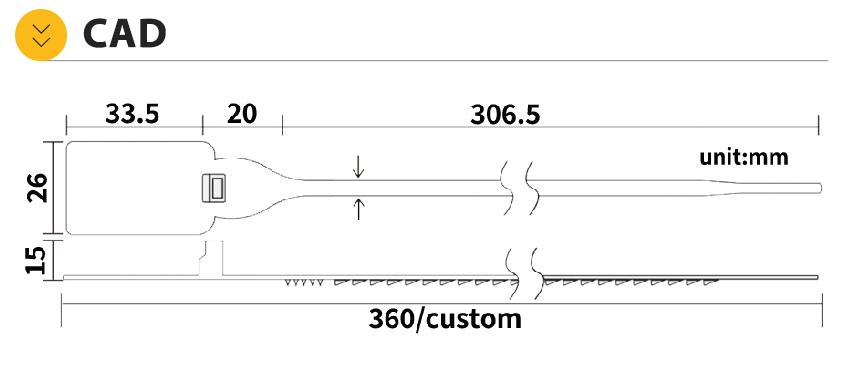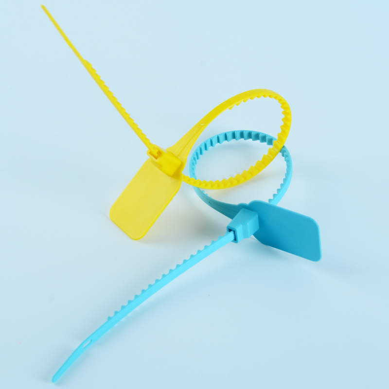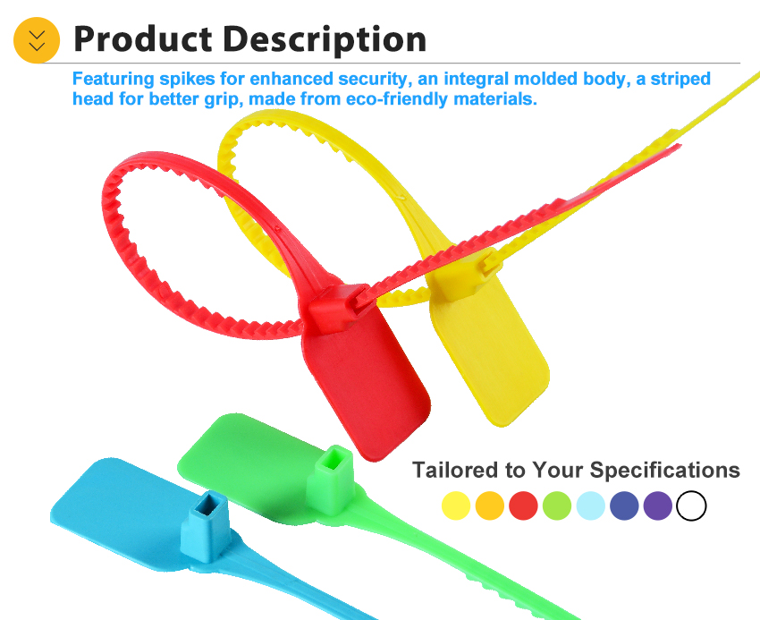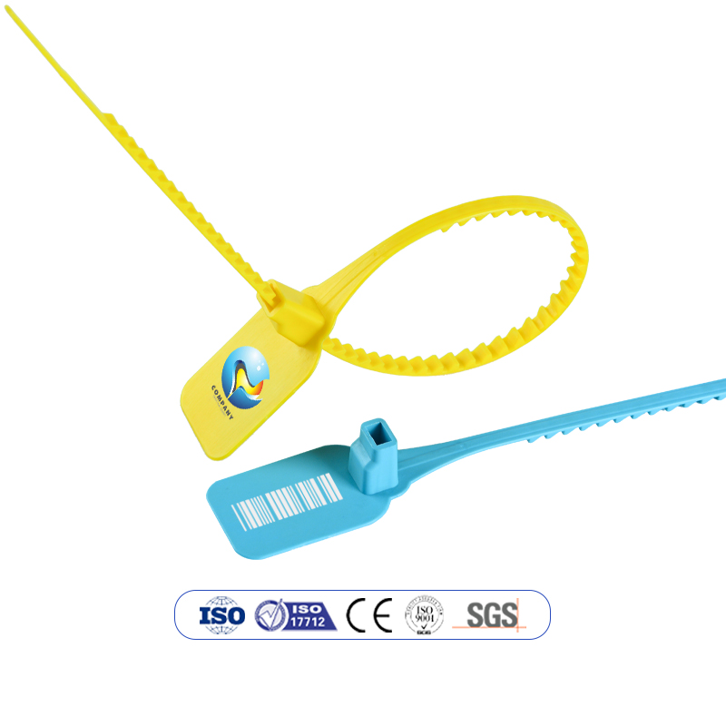 Plastic Security Seal HYPS-C04 is a newly designed plastic pull tight seal. This tamper evident seal is available with 180 mm or custom adjustable strap and fits any closure larger than 2.3mm. The tamper evident seal features a stainless steel locking insert and Tear Away Tab allowing for easy removal by hand. The 1" x 2" printing area allowing for unsurpassed customization.