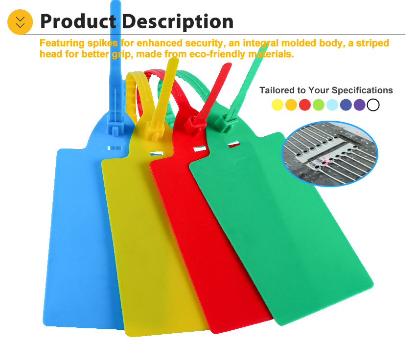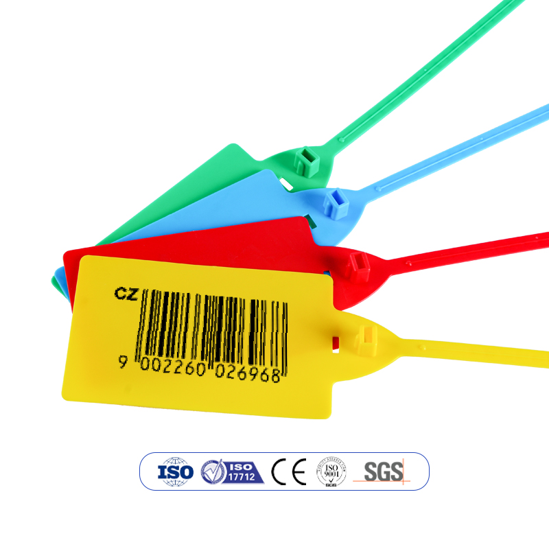 Plastic Security Seal HYPS-C06 is a newly designed plastic pull tight seal. This tamper evident seal is available with 180 mm or custom adjustable strap and fits any closure larger than 2.3mm. The tamper evident seal features a stainless steel locking insert and Tear Away Tab allowing for easy removal by hand. The 1" x 2" printing area allowing for unsurpassed customization.