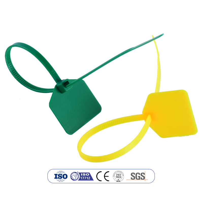 Plastic Security Seal HYPS-D04 is a newly designed plastic pull tight seal. This tamper evident seal is available with 180 mm or custom adjustable strap and fits any closure larger than 2.3mm. The tamper evident seal features a stainless steel locking insert and Tear Away Tab allowing for easy removal by hand. The 1" x 2" printing area allowing for unsurpassed customization.