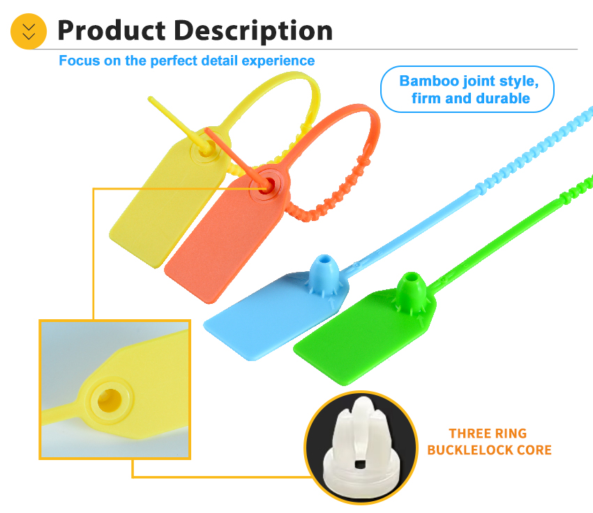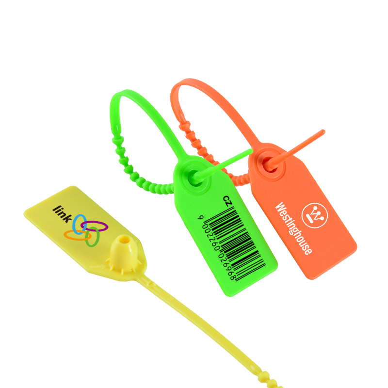 Plastic Security Seal HYPS-B05 is a newly designed plastic pull tight seal. This tamper evident seal is available with 180 mm or custom adjustable strap and fits any closure larger than 2.3mm. The tamper evident seal features a stainless steel locking insert and Tear Away Tab allowing for easy removal by hand. The 1" x 2" printing area allowing for unsurpassed customization.