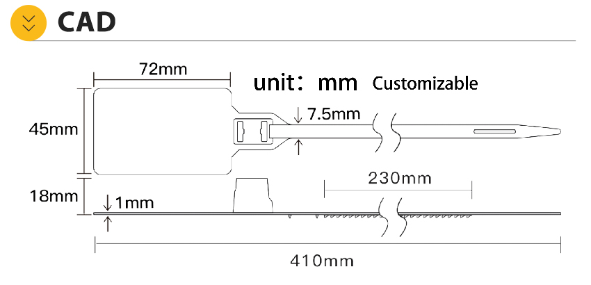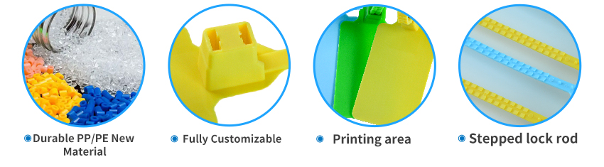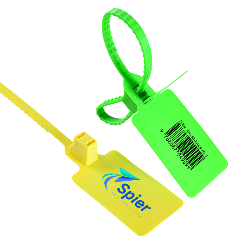 Plastic Security Seal HYPS-C11 is a newly designed plastic pull tight seal. This tamper evident seal is available with 180 mm or custom adjustable strap and fits any closure larger than 2.3mm. The tamper evident seal features a stainless steel locking insert and Tear Away Tab allowing for easy removal by hand. The 1" x 2" printing area allowing for unsurpassed customization.