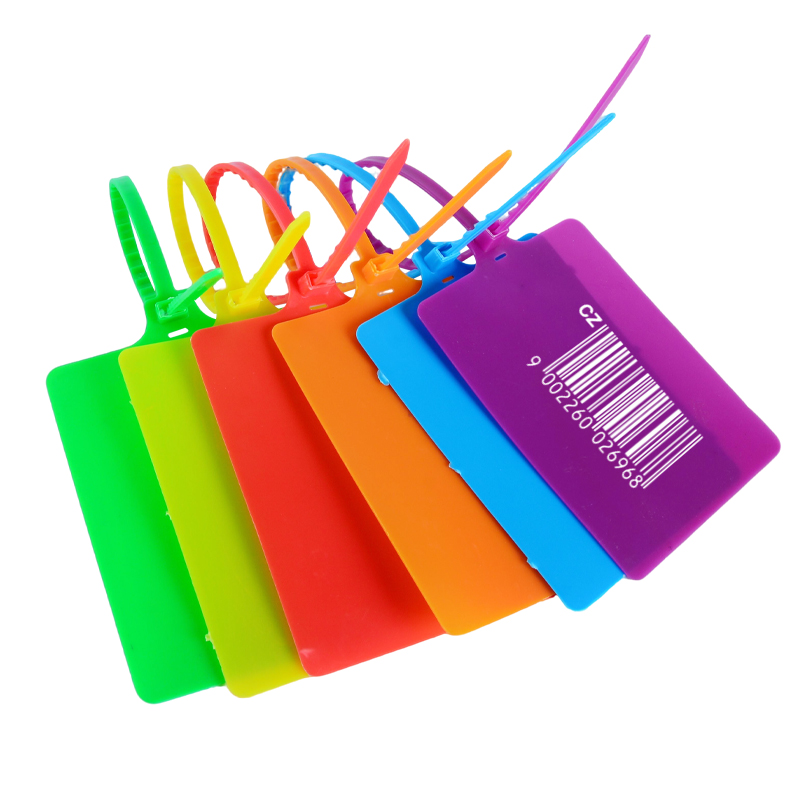 Plastic Security Seal is a newly designed plastic pull tight seal. This tamper evident seal is available with 180 mm or custom adjustable strap and fits any closure larger than 2.3mm. The tamper evident seal features a stainless steel locking insert and Tear Away Tab allowing for easy removal by hand. The 1" x 2" printing area allowing for unsurpassed customization.