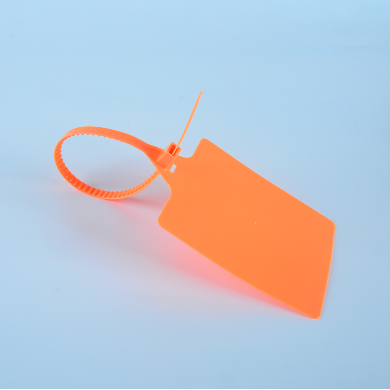 Plastic Security Seal is a newly designed plastic pull tight seal. This tamper evident seal is available with 180 mm or custom adjustable strap and fits any closure larger than 2.3mm. The tamper evident seal features a stainless steel locking insert and Tear Away Tab allowing for easy removal by hand. The 1" x 2" printing area allowing for unsurpassed customization.