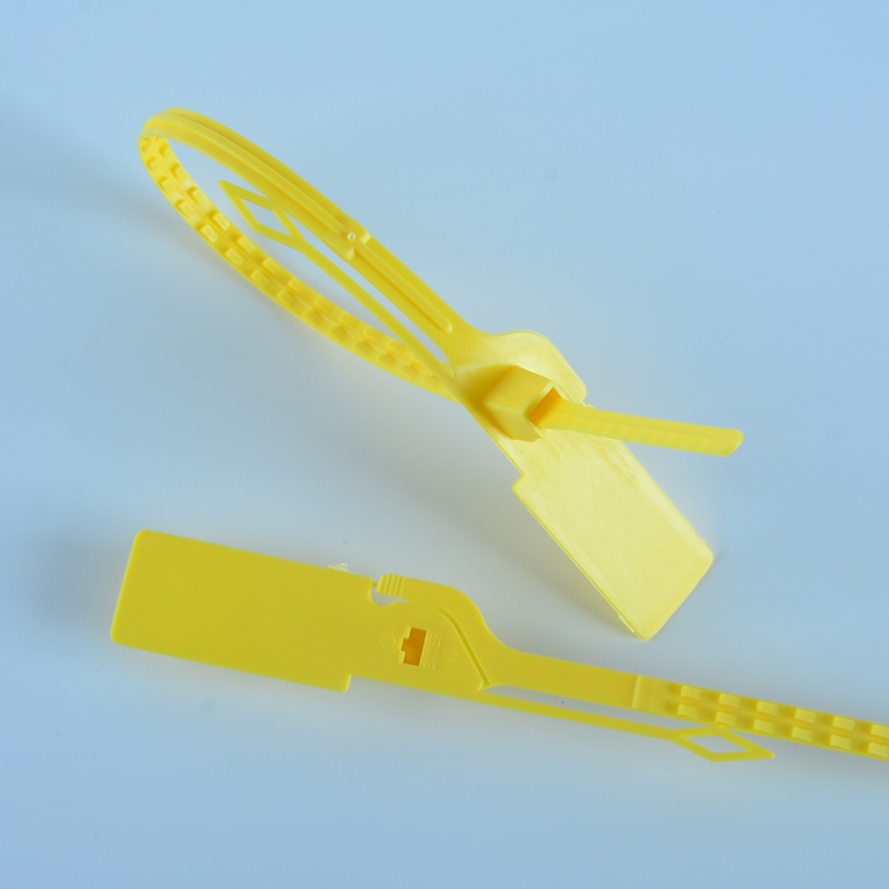 Plastic Security Seal HYPS-D06 is a newly designed plastic pull tight seal. This tamper evident seal is available with 180 mm or custom adjustable strap and fits any closure larger than 2.3mm. The tamper evident seal features a stainless steel locking insert and Tear Away Tab allowing for easy removal by hand. The 1" x 2" printing area allowing for unsurpassed customization.