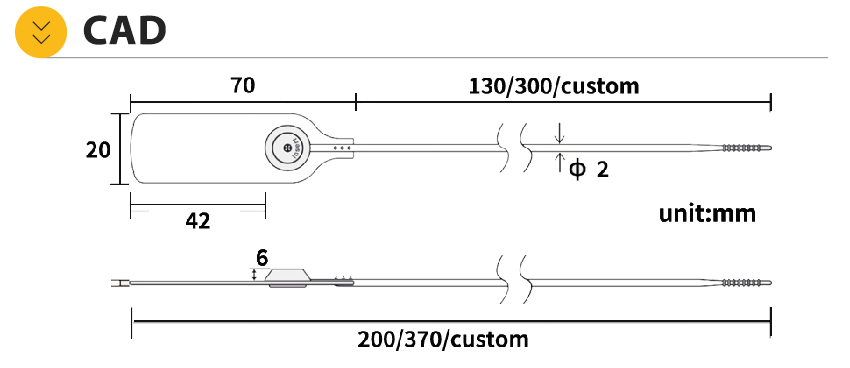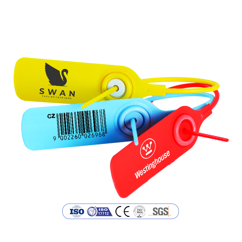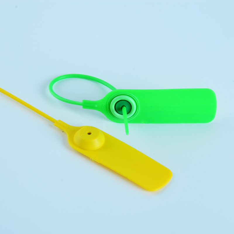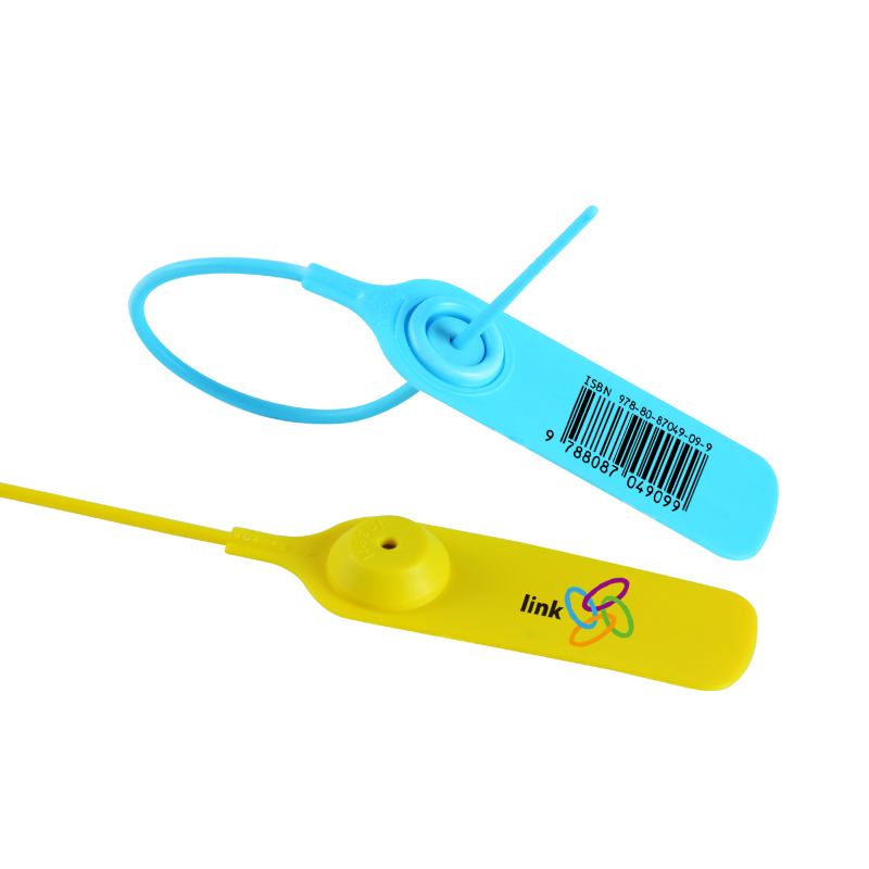 Plastic Security Seal HYPS-A04 is a newly designed plastic pull tight seal. This tamper evident seal is available with 180 mm or custom adjustable strap and fits any closure larger than 2.3mm. The tamper evident seal features a stainless steel locking insert and Tear Away Tab allowing for easy removal by hand. The 1" x 2" printing area allowing for unsurpassed customization.