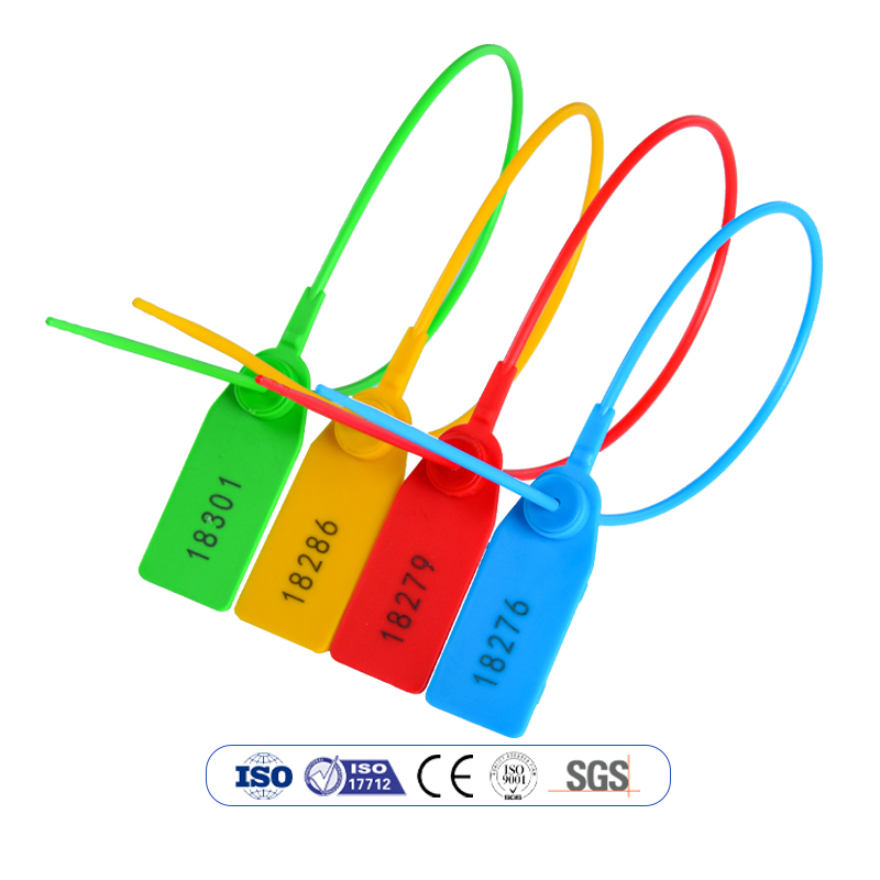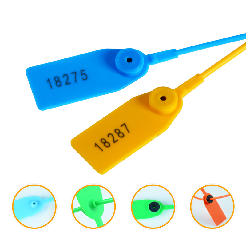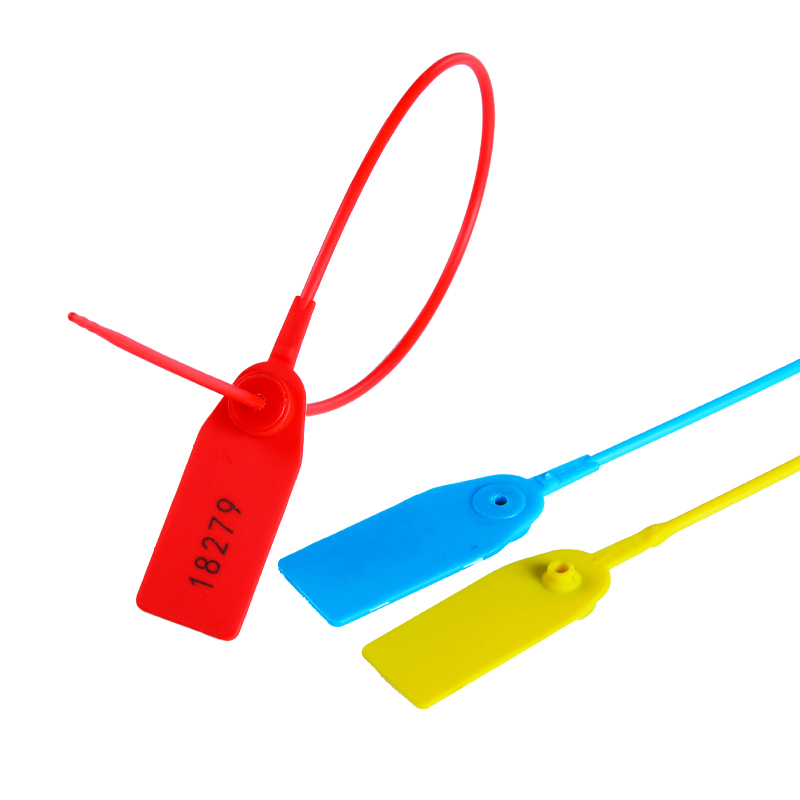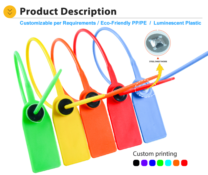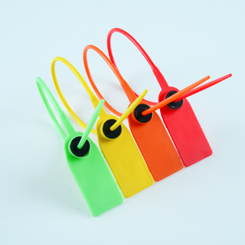 Plastic Security Seal HYPS-A14 is a newly designed plastic pull tight seal. This tamper evident seal is available with 180 mm or custom adjustable strap and fits any closure larger than 2.3mm. The tamper evident seal features a stainless steel locking insert and Tear Away Tab allowing for easy removal by hand. The 1" x 2" printing area allowing for unsurpassed customization.