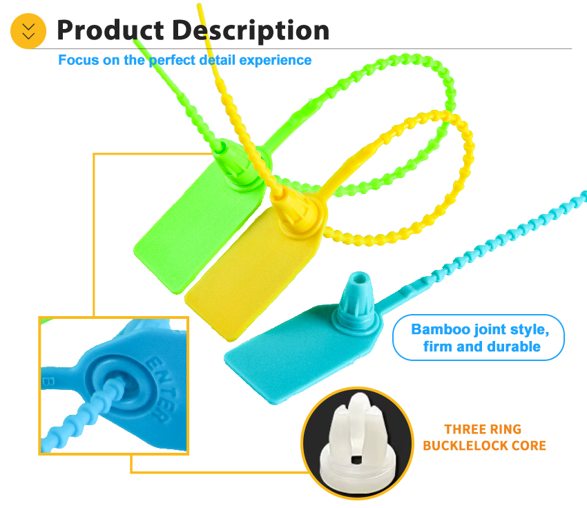 Plastic Security Seal HYPS-B02 is a newly designed plastic pull tight seal. This tamper evident seal is available with 180 mm or custom adjustable strap and fits any closure larger than 2.3mm. The tamper evident seal features a stainless steel locking insert and Tear Away Tab allowing for easy removal by hand. The 1" x 2" printing area allowing for unsurpassed customization.