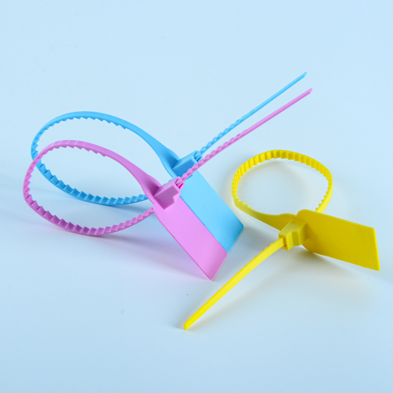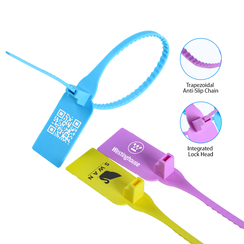Plastic Security Seal HYPS-C03 is a newly designed plastic pull tight seal. This tamper evident seal is available with 180 mm or custom adjustable strap and fits any closure larger than 2.3mm. The tamper evident seal features a stainless steel locking insert and Tear Away Tab allowing for easy removal by hand. The 1" x 2" printing area allowing for unsurpassed customization.