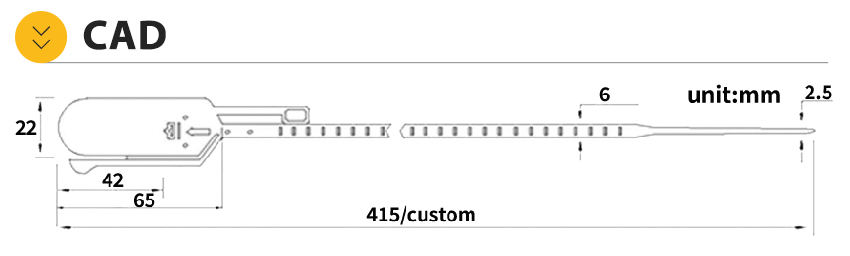 Plastic Security Seal HYPS-C05 is a newly designed plastic pull tight seal. This tamper evident seal is available with 180 mm or custom adjustable strap and fits any closure larger than 2.3mm. The tamper evident seal features a stainless steel locking insert and Tear Away Tab allowing for easy removal by hand. The 1" x 2" printing area allowing for unsurpassed customization.