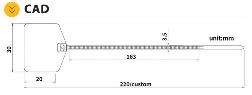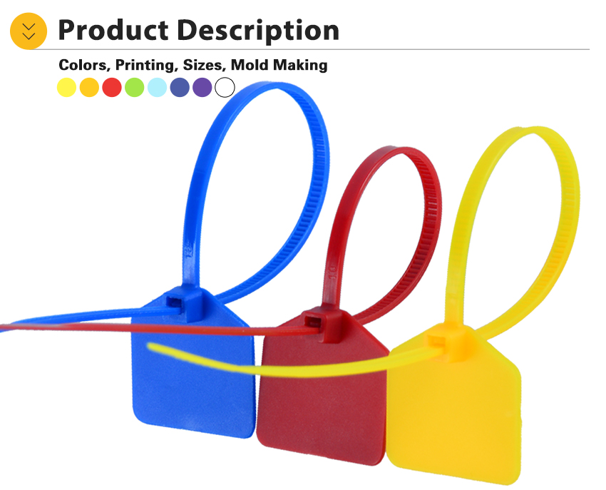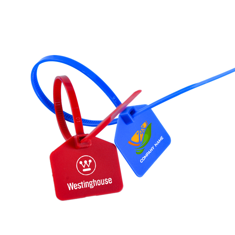 Plastic Security Seal HYPS-D04 is a newly designed plastic pull tight seal. This tamper evident seal is available with 180 mm or custom adjustable strap and fits any closure larger than 2.3mm. The tamper evident seal features a stainless steel locking insert and Tear Away Tab allowing for easy removal by hand. The 1" x 2" printing area allowing for unsurpassed customization.