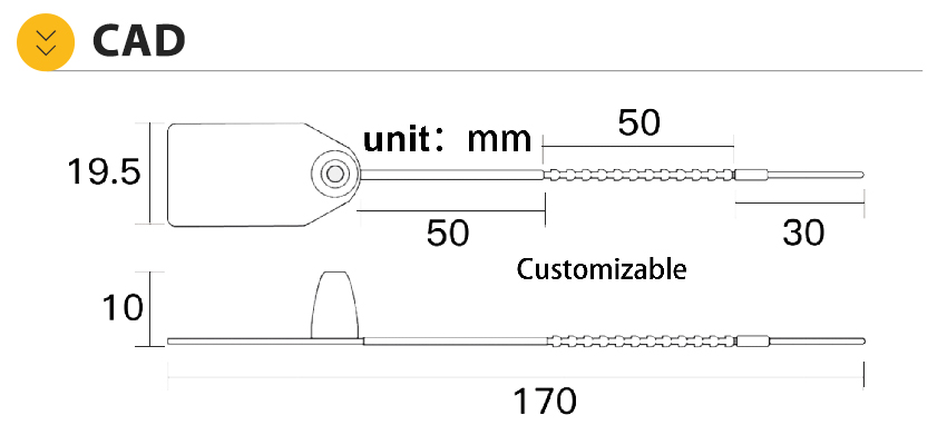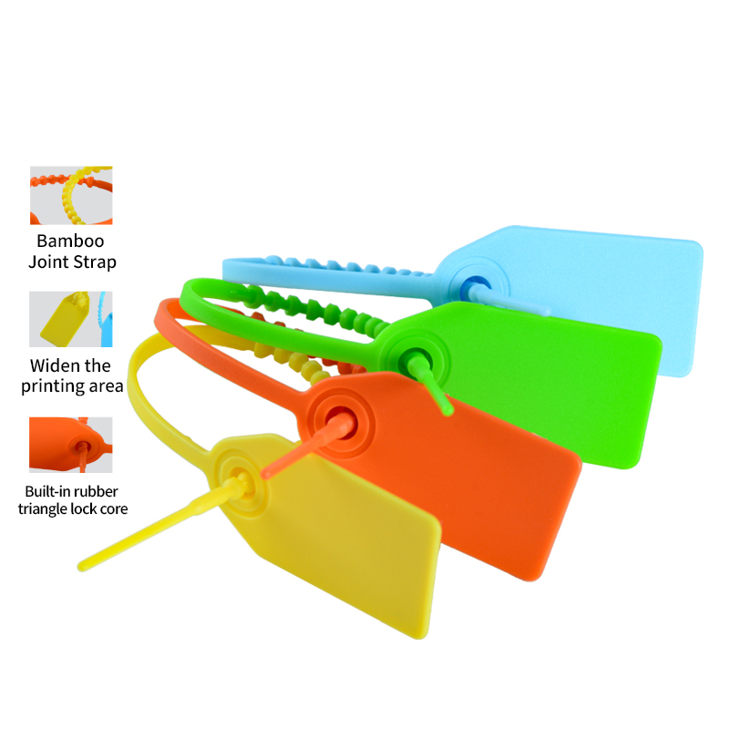 Plastic Security Seal HYPS-B05 is a newly designed plastic pull tight seal. This tamper evident seal is available with 180 mm or custom adjustable strap and fits any closure larger than 2.3mm. The tamper evident seal features a stainless steel locking insert and Tear Away Tab allowing for easy removal by hand. The 1" x 2" printing area allowing for unsurpassed customization.