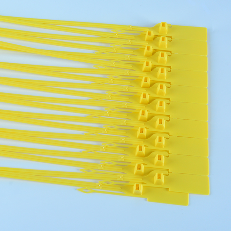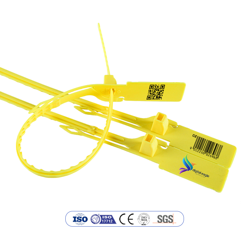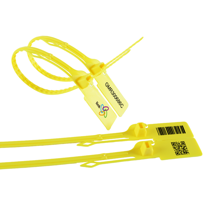 Plastic Security Seal HYPS-D06 is a newly designed plastic pull tight seal. This tamper evident seal is available with 180 mm or custom adjustable strap and fits any closure larger than 2.3mm. The tamper evident seal features a stainless steel locking insert and Tear Away Tab allowing for easy removal by hand. The 1" x 2" printing area allowing for unsurpassed customization.