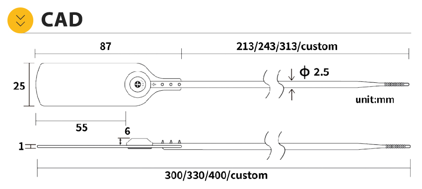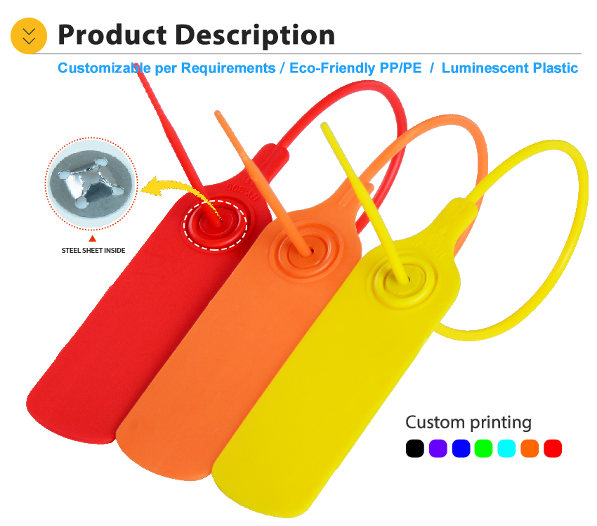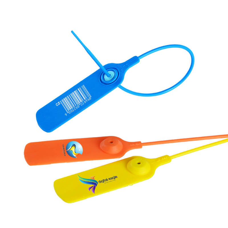 Plastic Security Seal HYPS-A12 is a newly designed plastic pull tight seal. This tamper evident seal is available with 180 mm or custom adjustable strap and fits any closure larger than 2.3mm. The tamper evident seal features a stainless steel locking insert and Tear Away Tab allowing for easy removal by hand. The 1" x 2" printing area allowing for unsurpassed customization.