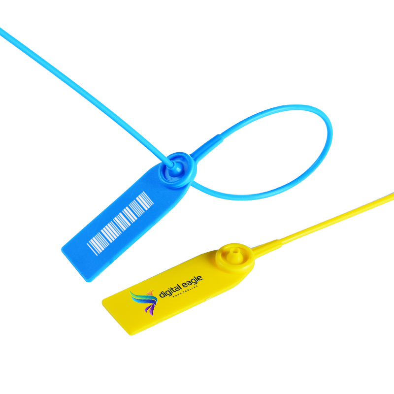 Plastic Security Seal HYPS-A15 is a newly designed plastic pull tight seal. This tamper evident seal is available with 180 mm or custom adjustable strap and fits any closure larger than 2.3mm. The tamper evident seal features a stainless steel locking insert and Tear Away Tab allowing for easy removal by hand. The 1" x 2" printing area allowing for unsurpassed customization.